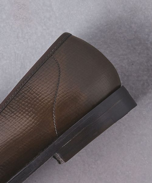 アメリカ・ホーウィン社製のハッチグレインコードバンを採用、型押しで仕上げた一足です。