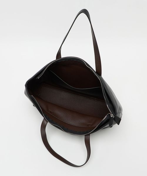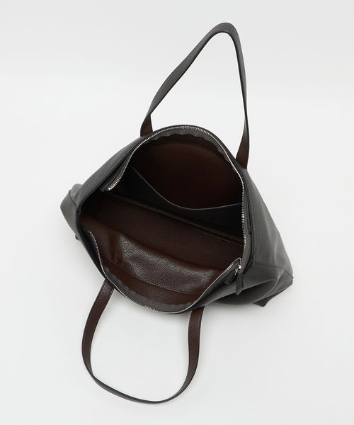 革の一枚仕立ての袋物をイメージしたデザインなので、バッグ自体が自立する構造ではありませんが、荷物を入れた際の落ち感や柔らかな素材感を活かしたフォルムの美しさをお楽しみいただけます。
