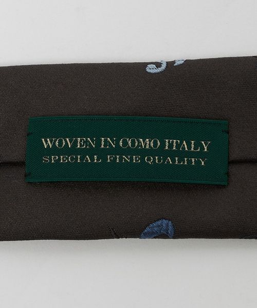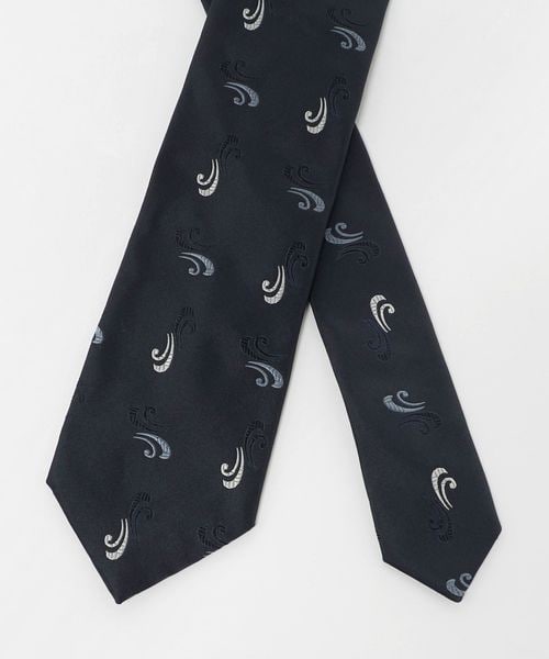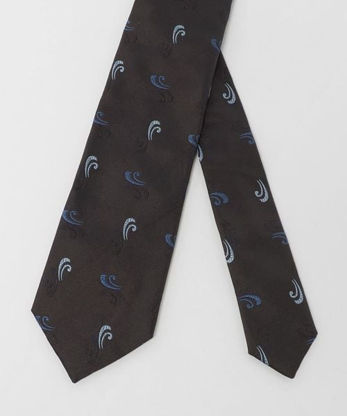 落ち着いたカラーに細かなウェーブ柄のネクタイ。
