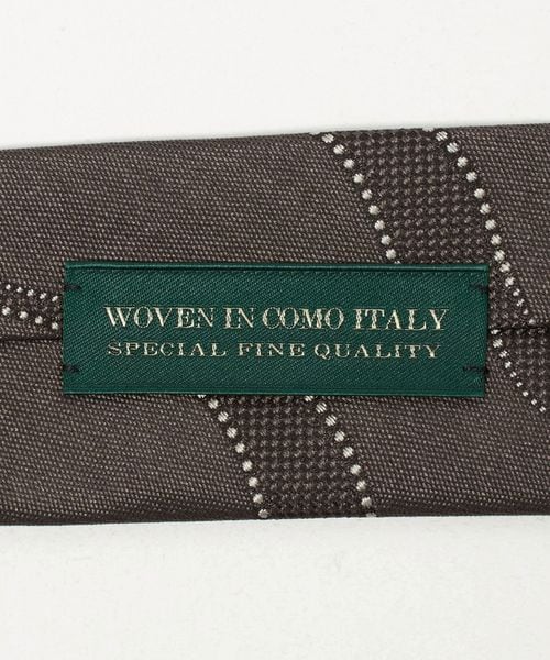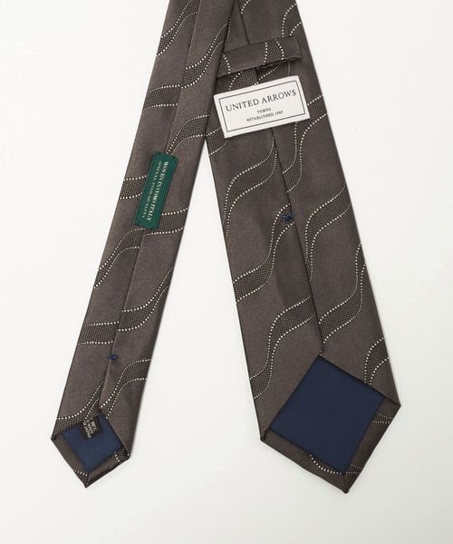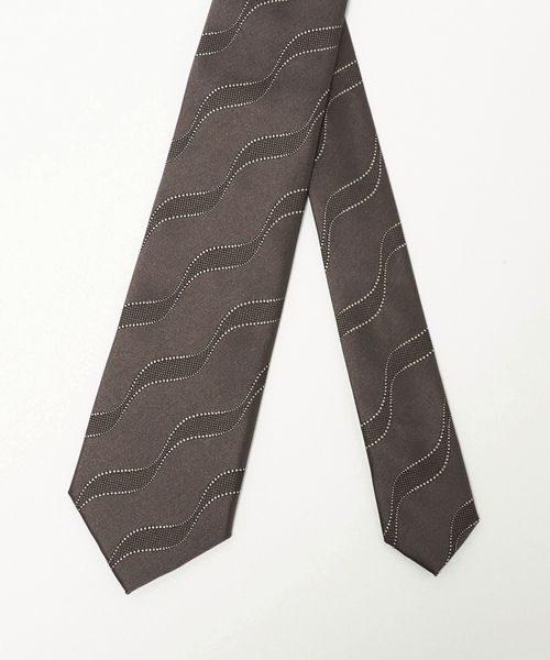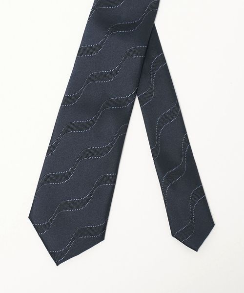 ジャカード織りで表現したストライプと波形柄を組み合わせた、モダンな雰囲気のネクタイ。