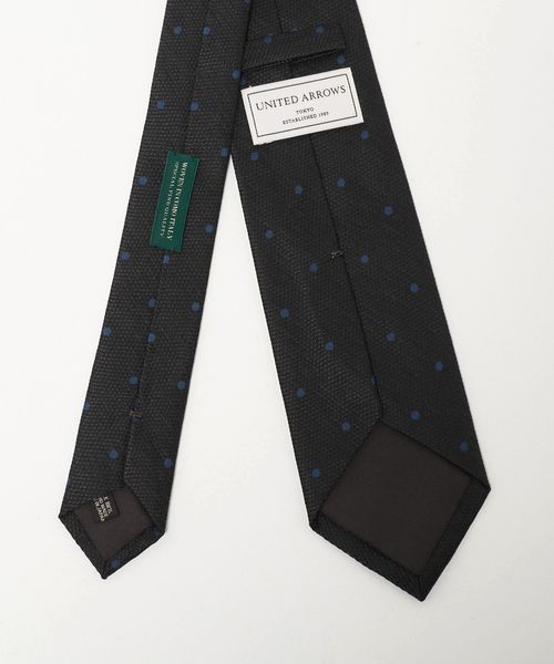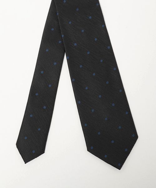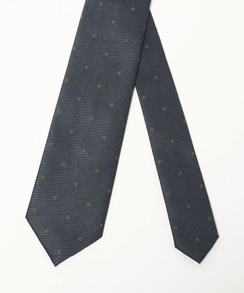 均一に配されたレトロな雰囲気をプラスするポルカドット柄のネクタイ。