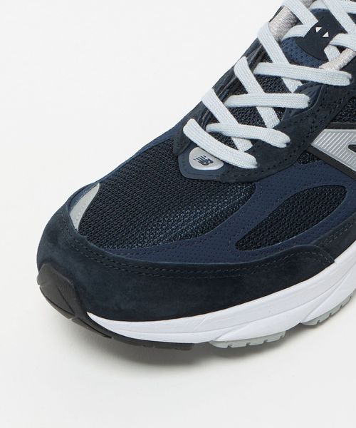 「990 v6」ブランディングロゴをはじめ細部のディテールワークが光る1足。