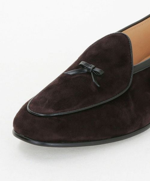 リラックス感がありながら、フロントの小ぶりなリボンが上品なアクセントになるベルジャンシューズ。