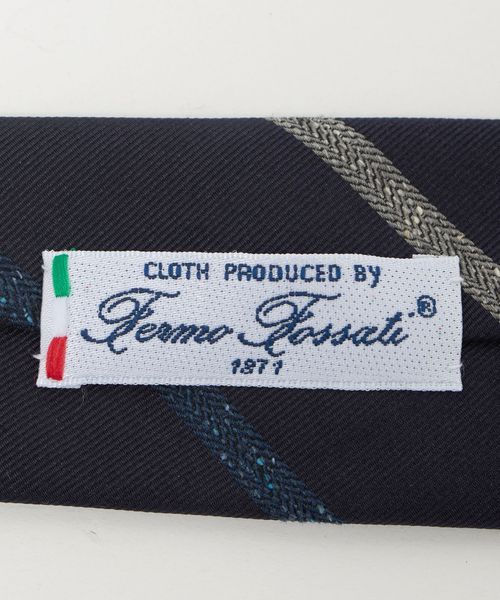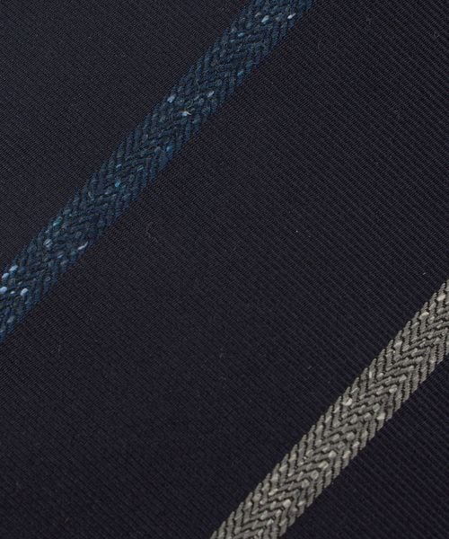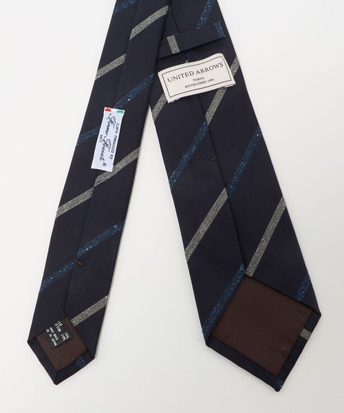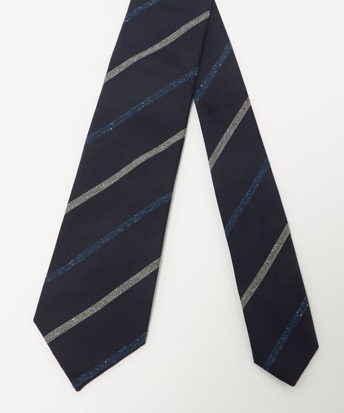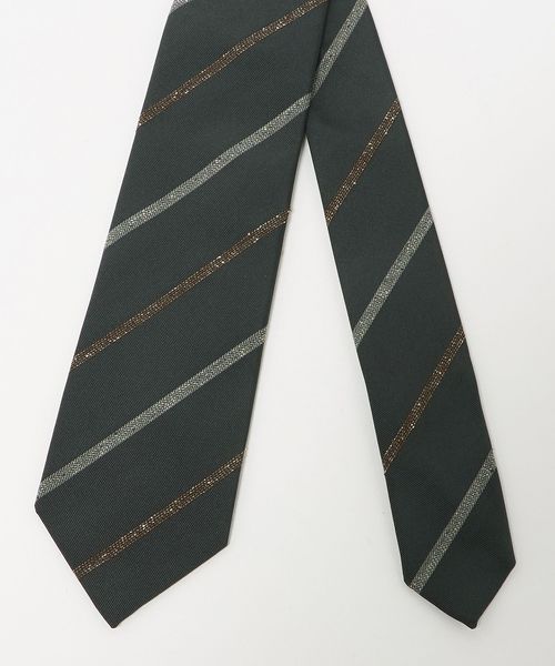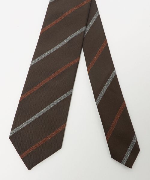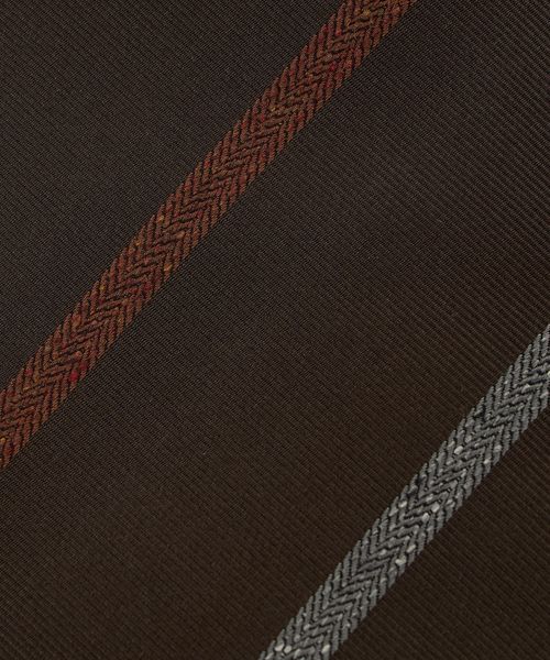 落ち着いた配色のベースカラーに味わいのある2色のストライプ柄が印象的なネクタイ。