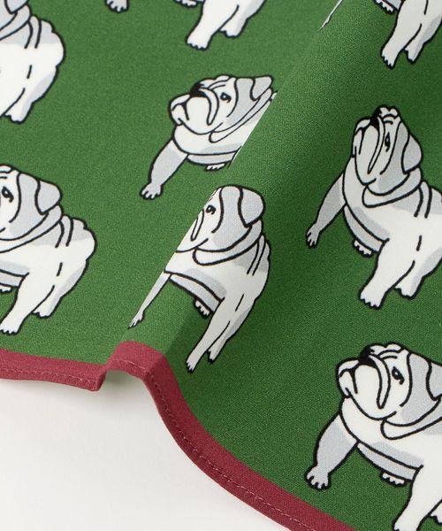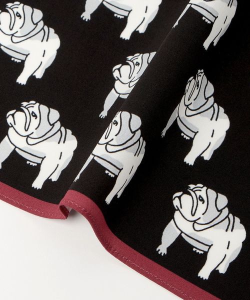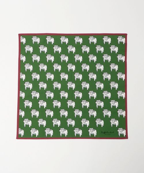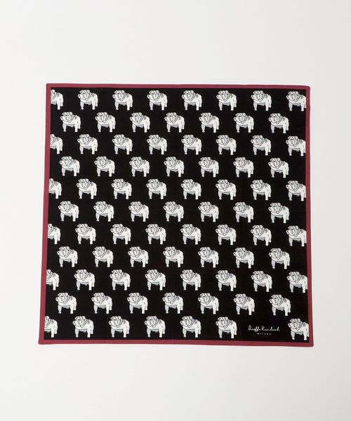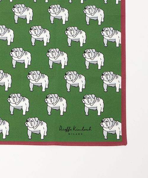 <Dieffe Kinloch>で人気の愛らしいブルドッグ柄をスケールアップし、遊び心ある存在感に仕上げたUA別注ハンカチ。