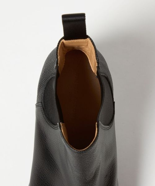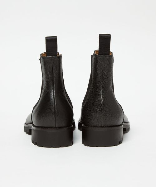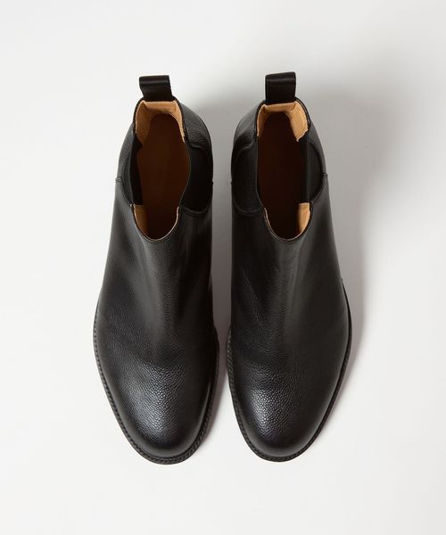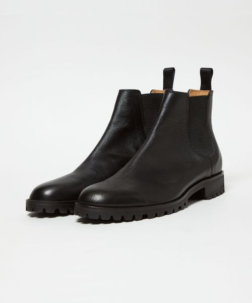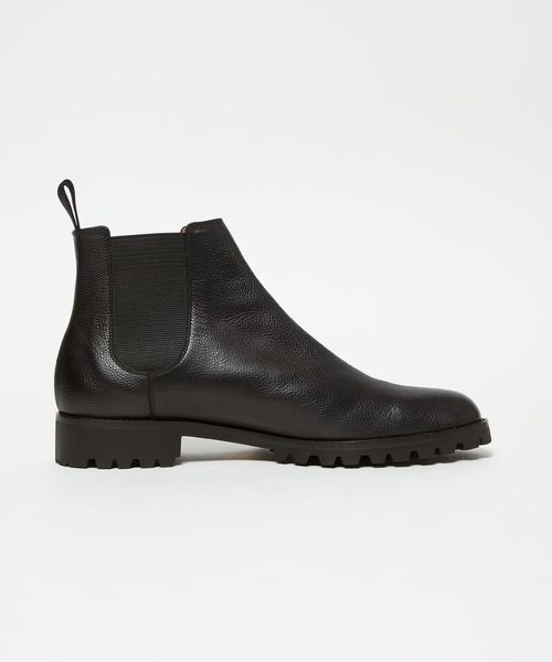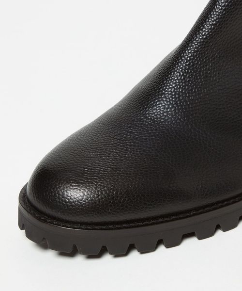 シャープで凹凸感のある型押しのシボ革が表情豊かなサイドゴアブーツ。