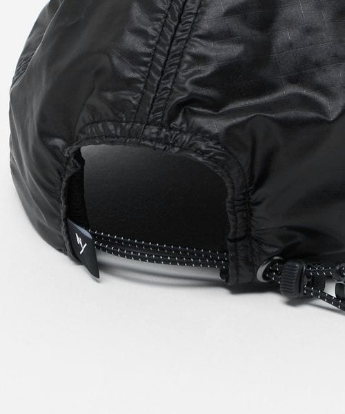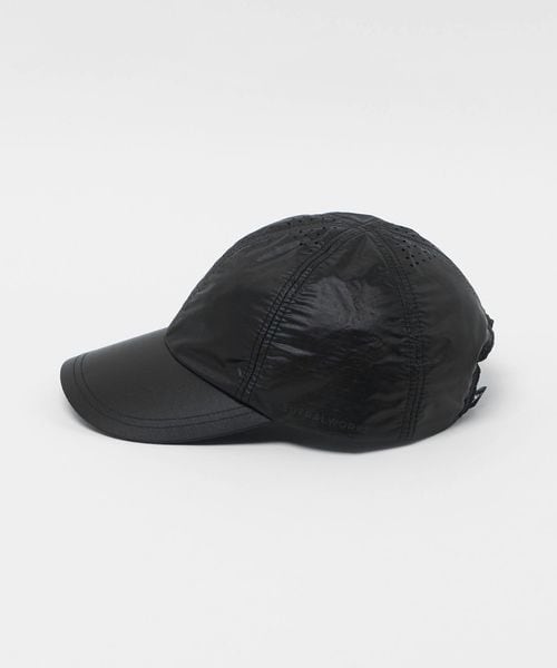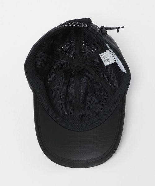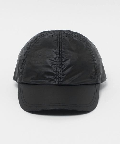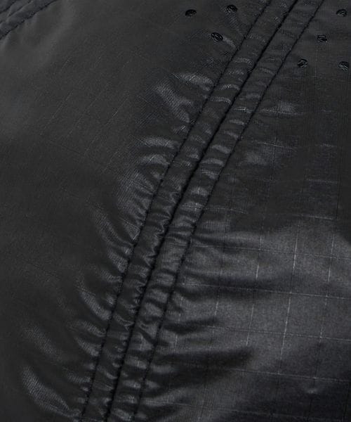 適度な光沢とシボ感のある素材は、軽量ではっ水性に優れたキャップ。