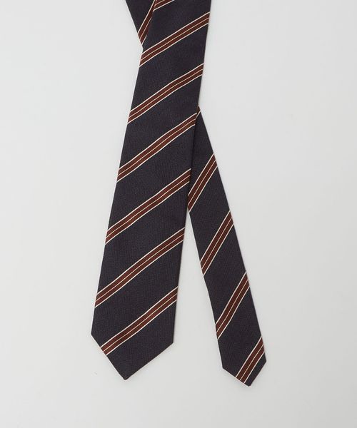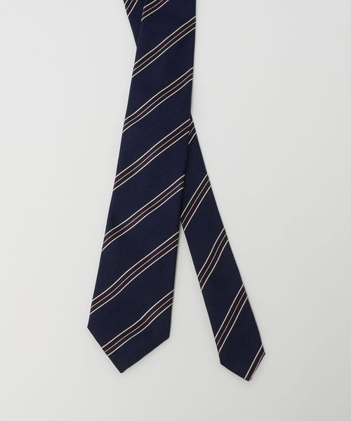 バランスの良い配色がアクセントとなるレジメンタルストライプのネクタイ。
