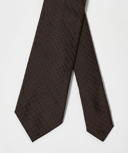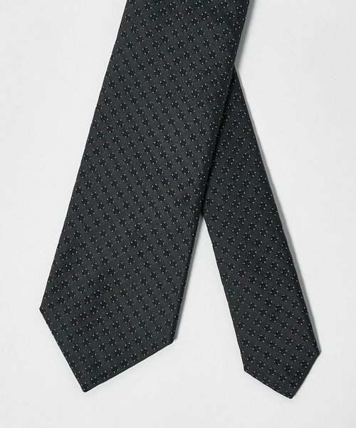 落ち着いたベースカラーに細かな小紋柄がデザインされたネクタイ。