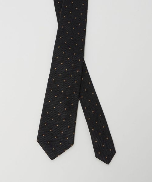 ミニマルなドット柄に表情のあるヘリンボーン柄が魅力のネクタイ