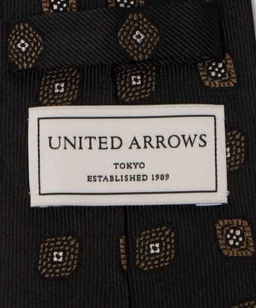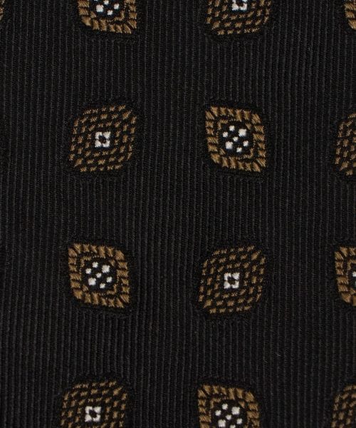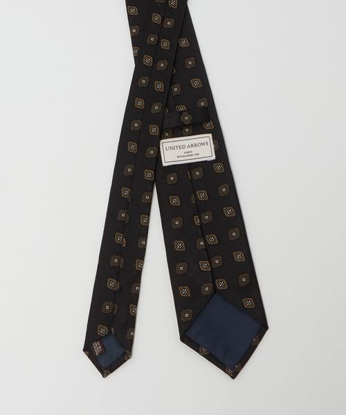 落ち着いたベースカラーにスクエア型の小紋柄がデザインされたネクタイ。