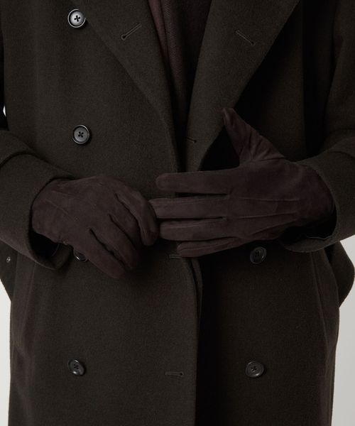 手元部分にボタンを取り付け、フィット感を高めた別注スエードグローブ。
