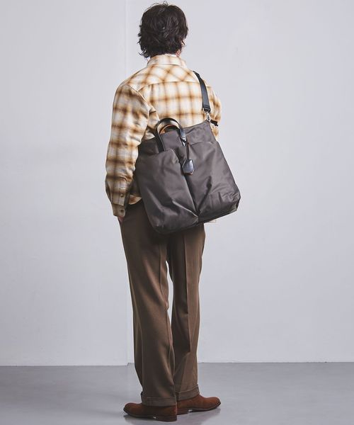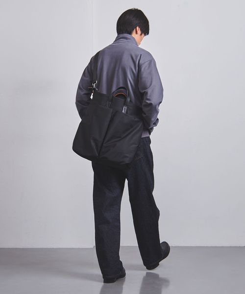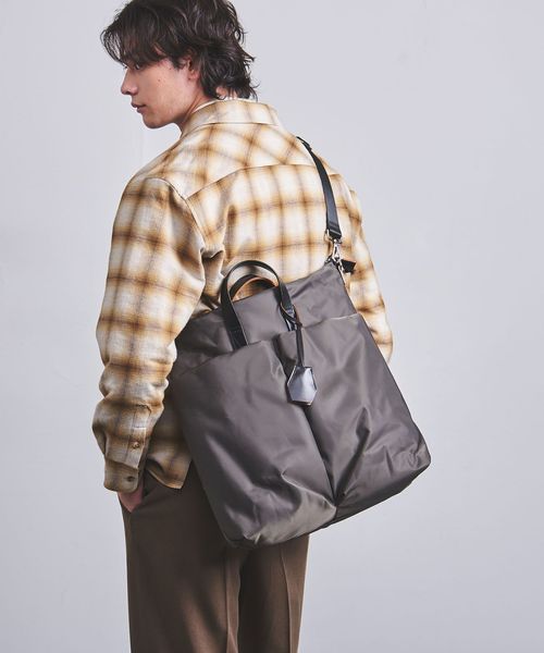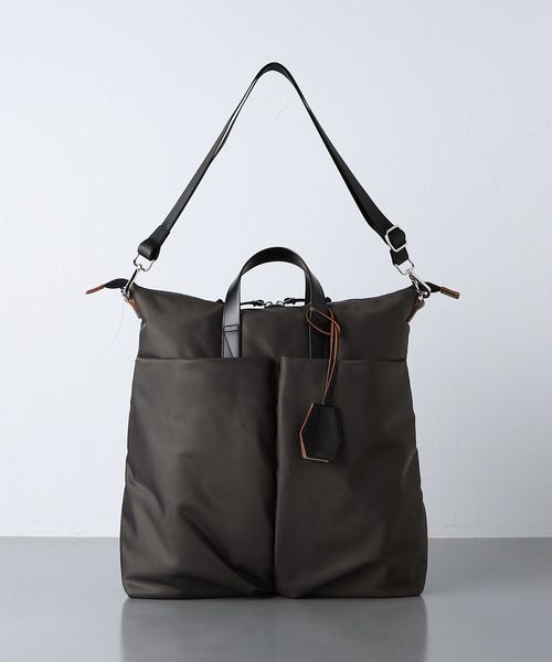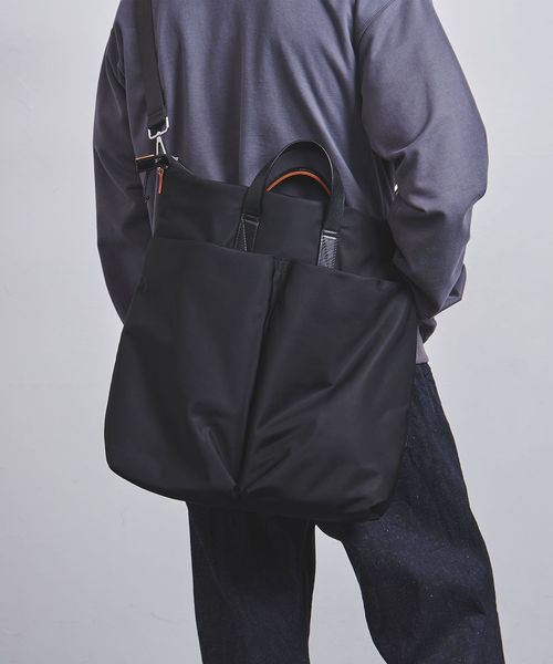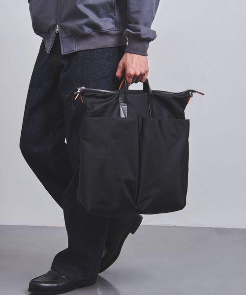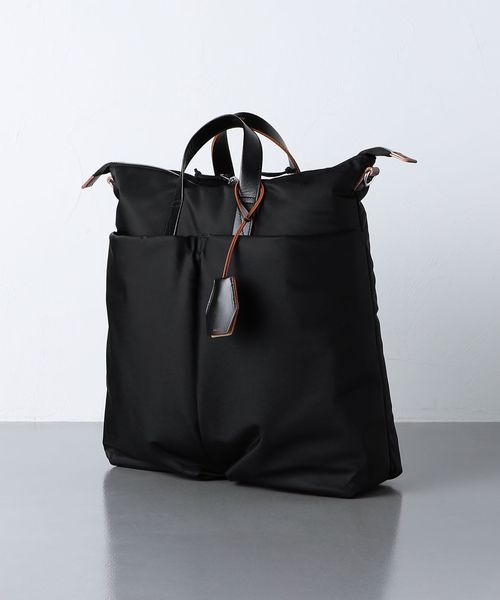 上品な光沢感が魅力のポリエステルツイルをメイン素材に使用した、国内旅行や出張に最適のトートバッグ。