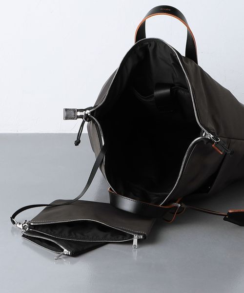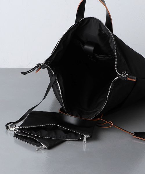 開口部はジッパー仕様で、小物等を収納可能なフロントポケットを配置。