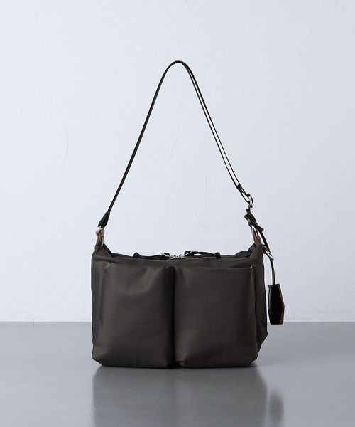 上品な光沢感が魅力のポリエステルツイルをメイン素材に使用したショルダーバッグ。