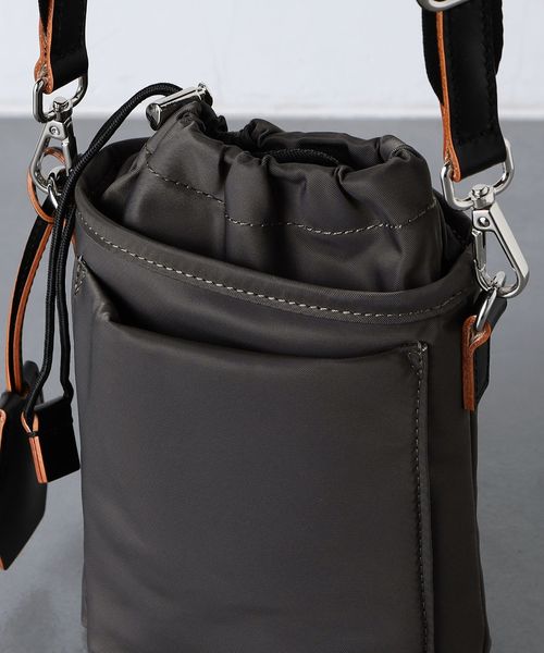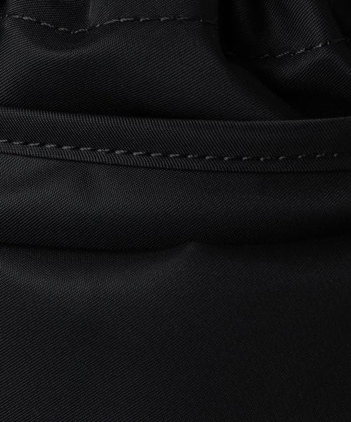開口部はドローストリング仕様で、小物等を収納可能なフロントポケットを配置。