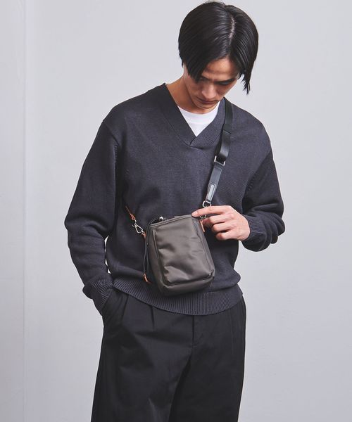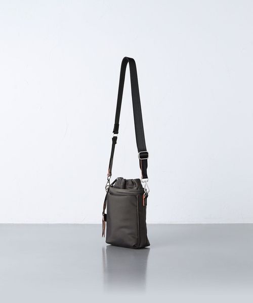 上品な光沢感が魅力のポリエステルツイルをメイン素材に使用したミニショルダーバッグ。