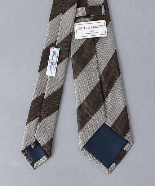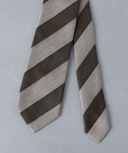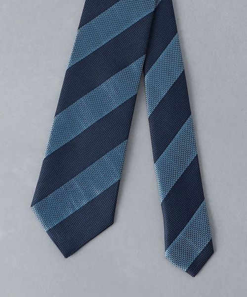 オーセンティックなレジメンタルストライプ柄を織りで表現することで、軽快な印象をプラスするネクタイ。