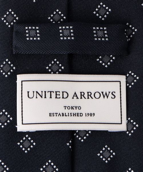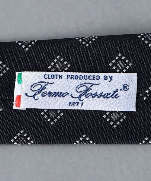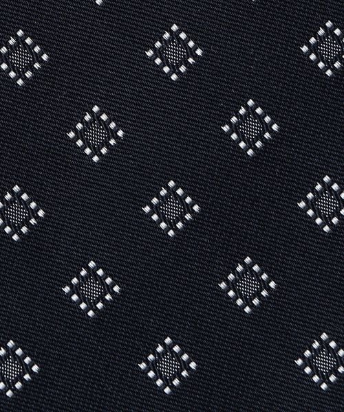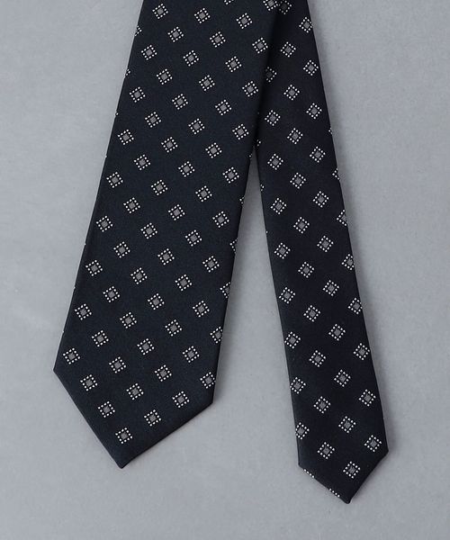 幾何学的なスクエアモチーフが目を引く小紋柄のネクタイ。