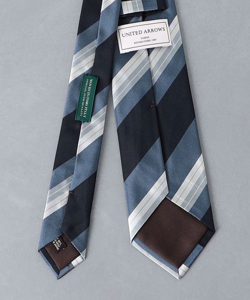落ち着いた配色とストライプ柄がクラシカルな印象のネクタイ。
