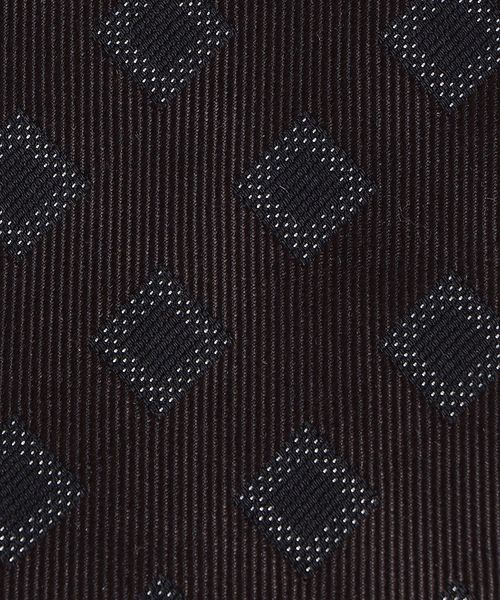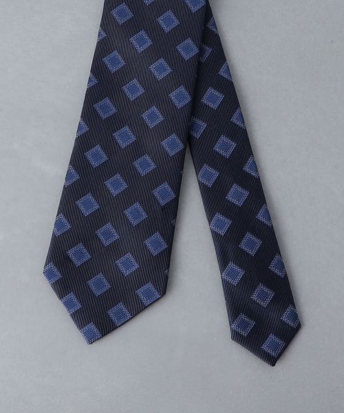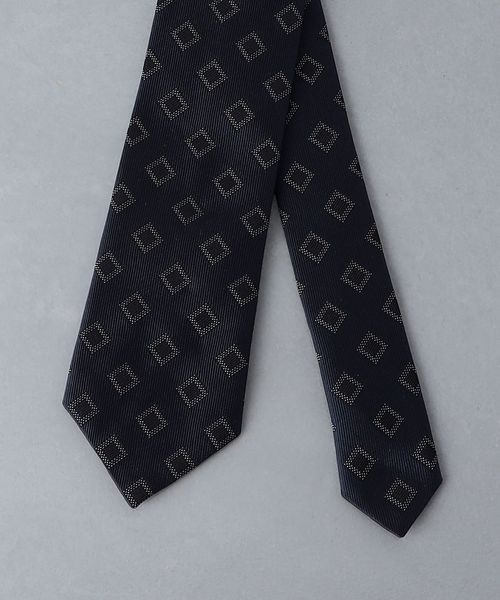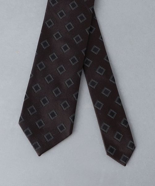 落ち着いたベースカラーにスクエア型の小紋柄がデザインされたネクタイ。