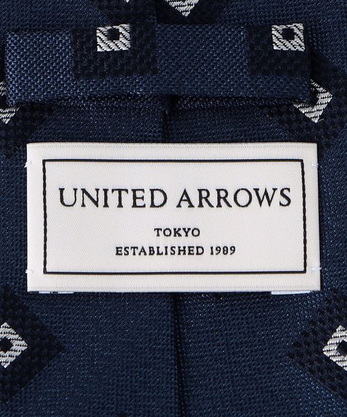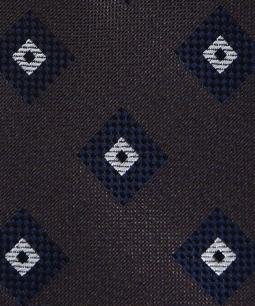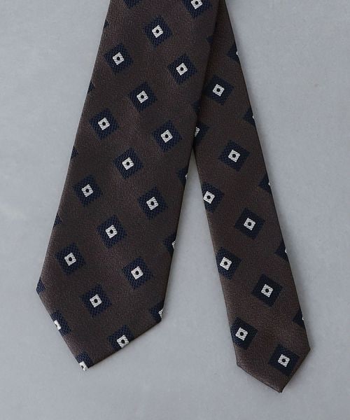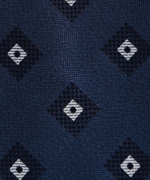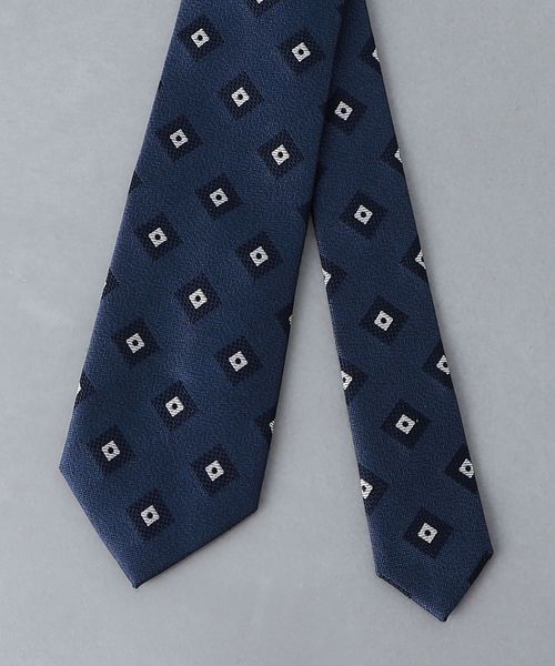 幾何学的なモチーフが目を引く小紋柄のネクタイ。
