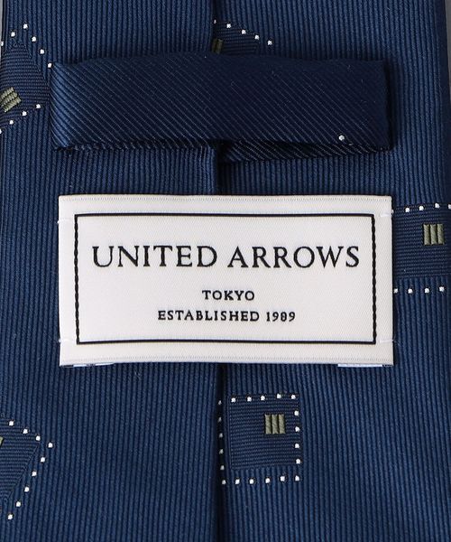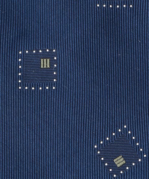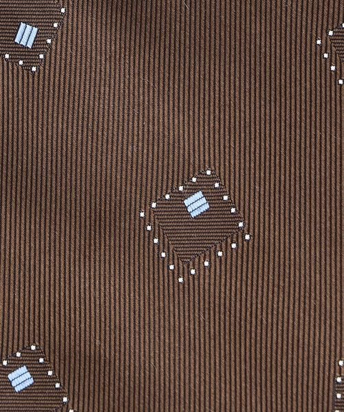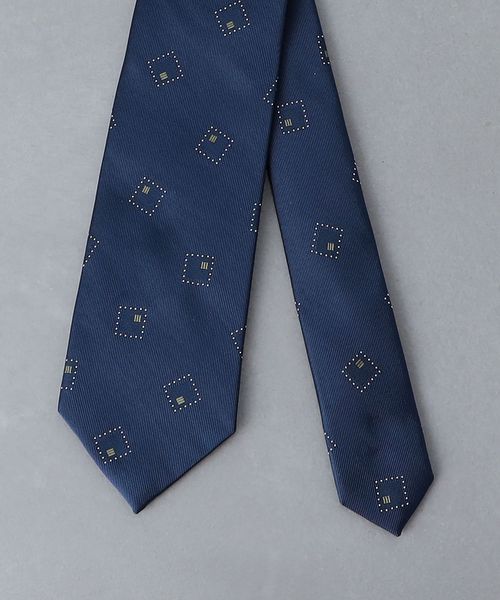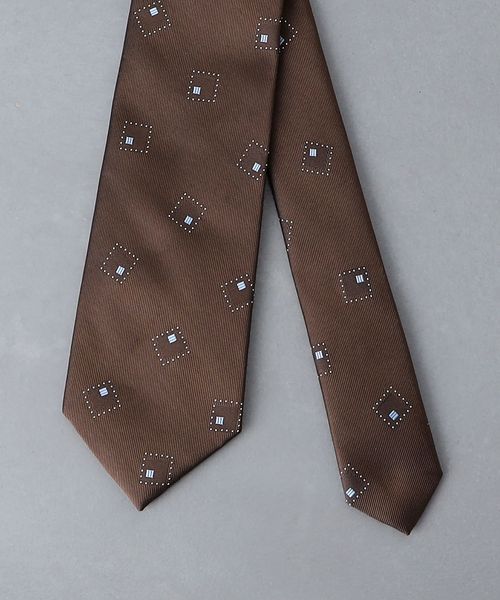 落ち着いたベースカラーにスクエア型の小紋柄がデザインされたネクタイ。