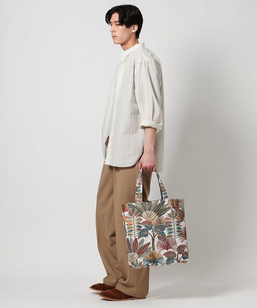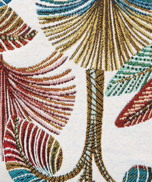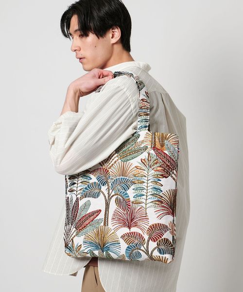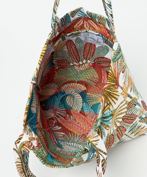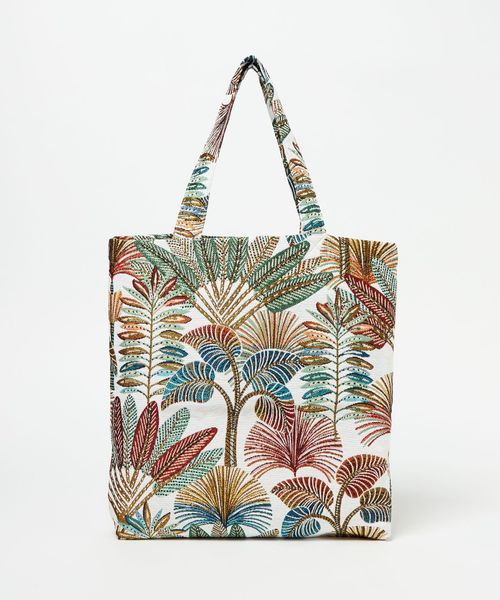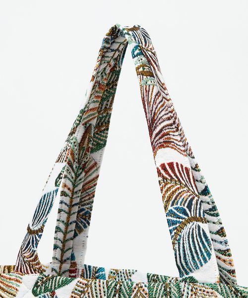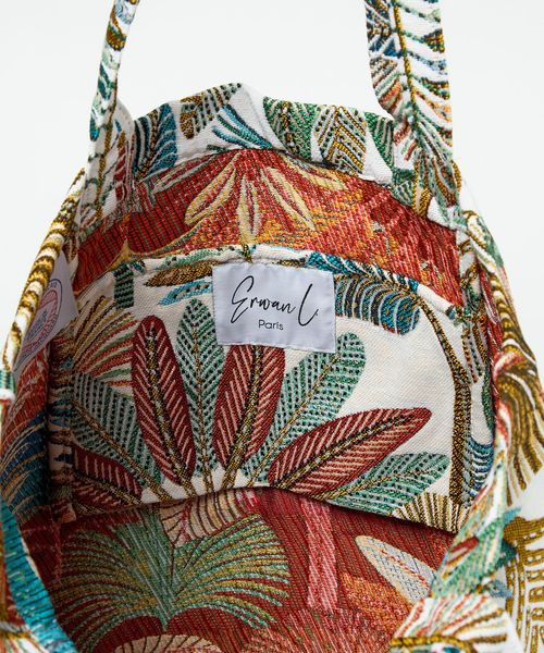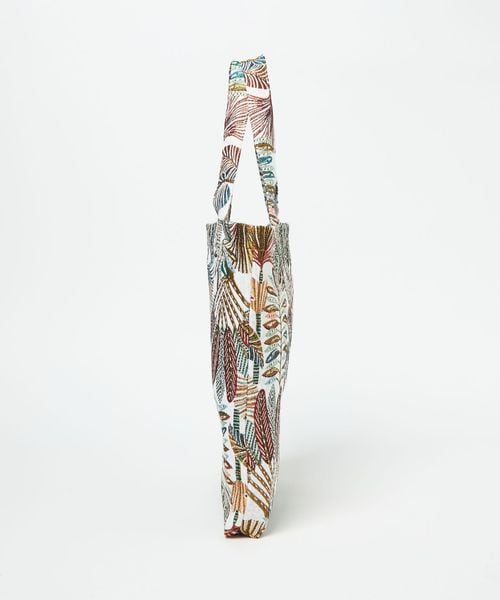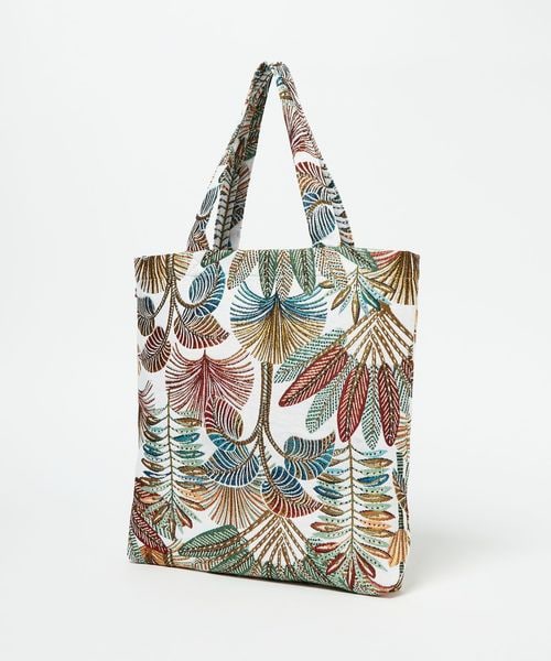 カラフルで繊細なリーフ柄を散りばめた、アート感覚あふれるトートバッグ。