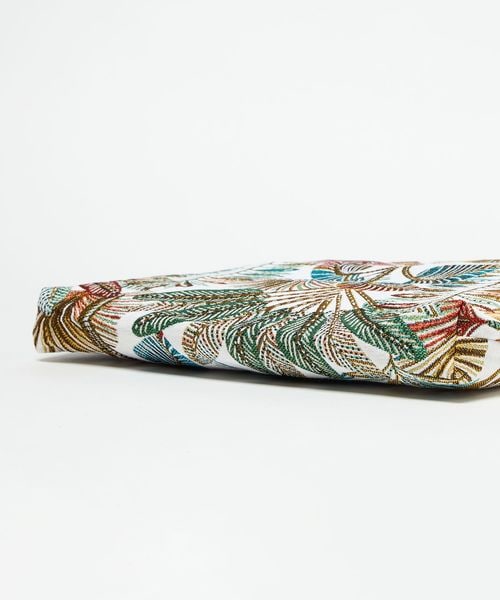 ナチュラルな風合いの生地と、落ち着いたトーンのジャガード柄を組み合わせることで、華やかさと上品さを兼ね備えた一品。