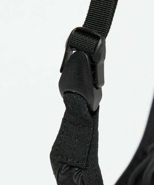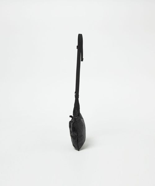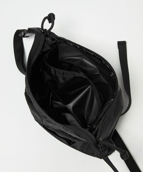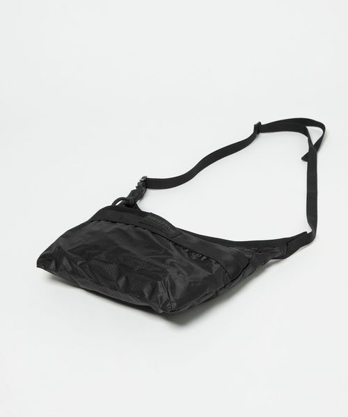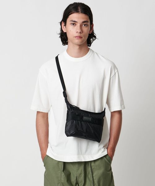ソフトなリップストップナイロンに、ブラックパターンのロゴがさりげなく映えるミニマルデザインのサコッシュです。