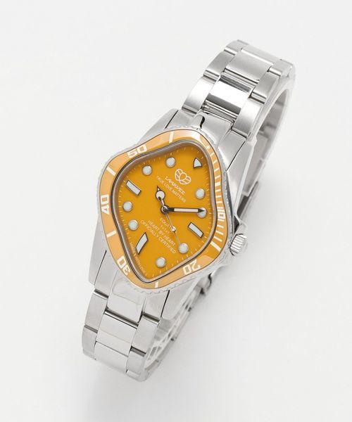 ベゼルと文字盤は存在感のあるイエローカラーが手元にアクセントを加えてくれます。