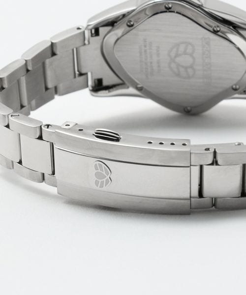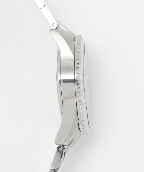 ベゼルと文字盤は淡いパステル調のラベンダーカラーが上品でリラックスした印象です。