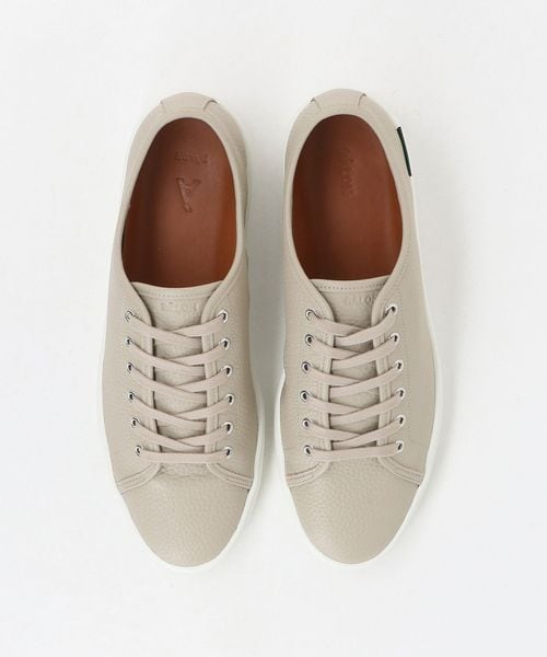 アッパー同色のアイレットでややカジュアルな雰囲気に対して、羽根全体に革パイピングでスッキリとした履き口。