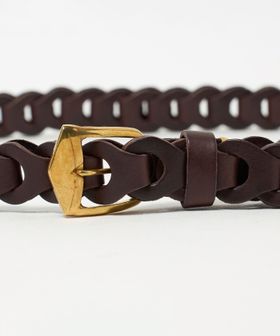 上質な革素材を手作業で丁寧に編み込み、一つ一つのパーツが組み合わさったデザインが特徴的なBOHOベルト。