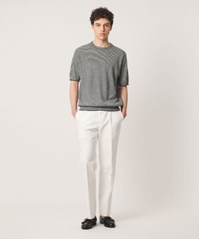 往時のヨーロッパ・リゾートスタイルを思わせるデザインは、リネンやシアサッカーなど春夏らしい軽やかな装いと好相性です。
