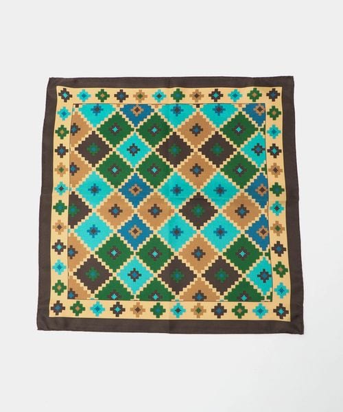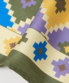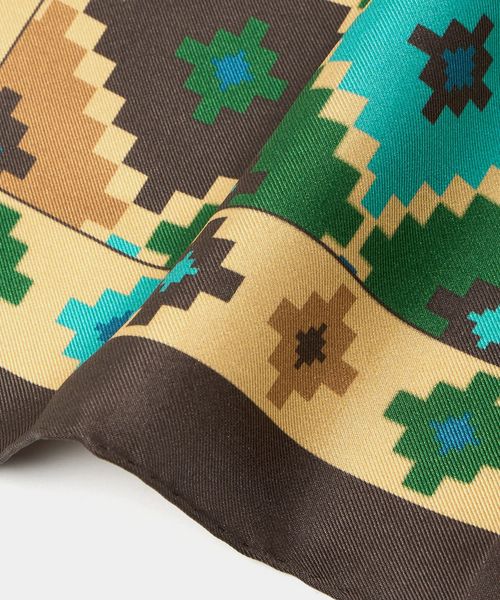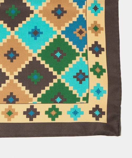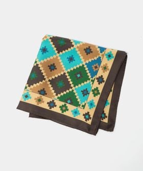 レトロな雰囲気の柄と配色が特徴のポケットチーフ。