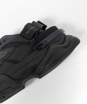 クイックシューレースと踵のバックルで脱ぎ履きしやすく、ミッドソールには履き心地の良いABZORB®を搭載。人工皮革/ブリーザブルメッシュのアッパーをオールブラックで展開。