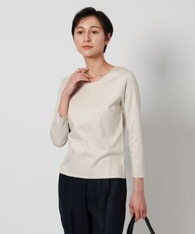 滑らかなコットン素材を使用したクルーネックの9分袖カットソー