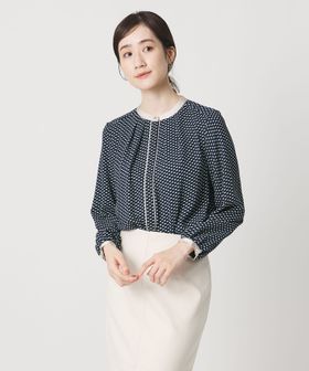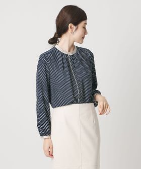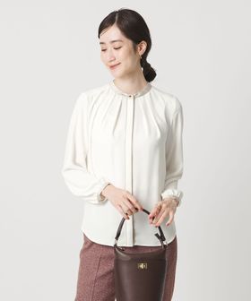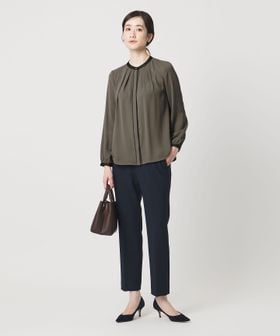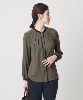 配色パイピングがアクセントのバイカラーデザインのブラウス