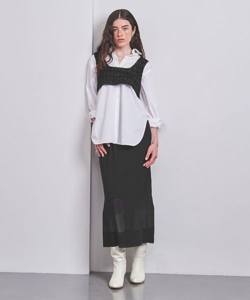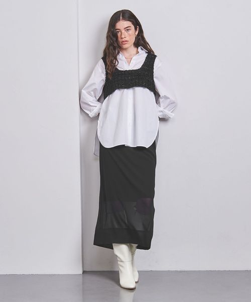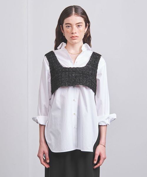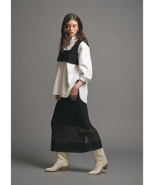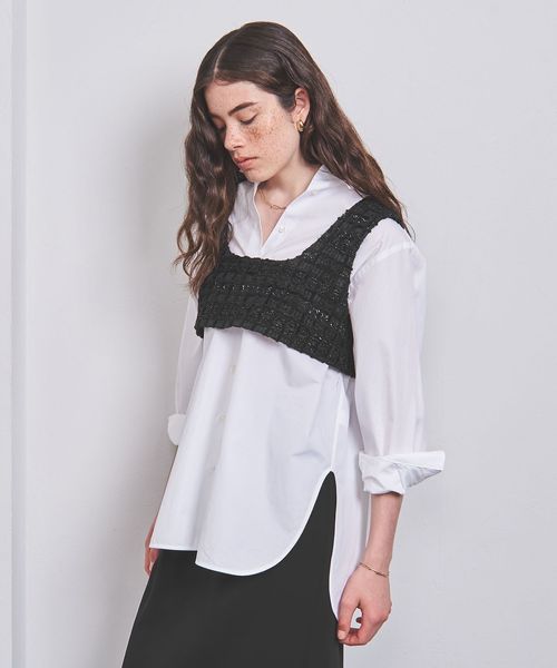 ビックシャツなどに重ね、テーパードシルエットのドレスパンツやデニム、タイトスカートなどとのコーディネートでトレンド感のある着こなしが完成します。