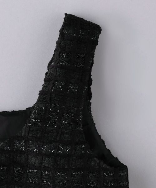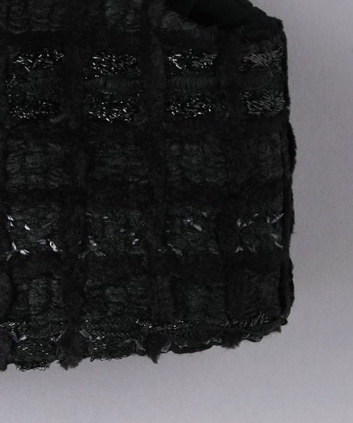 7種類の組成が異なる糸を使い、モール糸・ラメ糸・光沢糸をヨコ糸に組み入れ、ブラック一色でも立体的で高級感が感じられます。