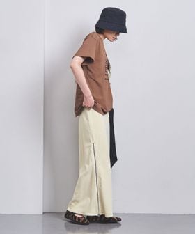 フィットシルエットのニットにサイドジップを大胆に開けてロングブーツと合わた大人らしい着こなしや、プリントTを合わせてカジュアルに着こなすのもおすすめです。