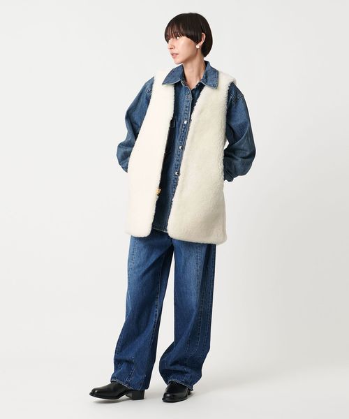 ふんわり厚みのあるボアが魅力的なライナーベスト