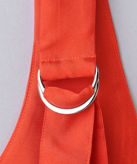 フロントはシンプルに、バックはシルバーカラーのDカンとショルダーから続いた長いテープがアクセントに。