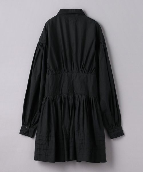 ギャザーとピンタックを盛り込んだシャツワンピース