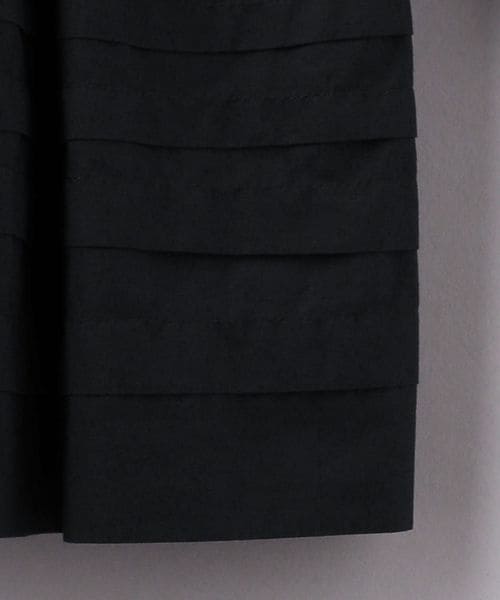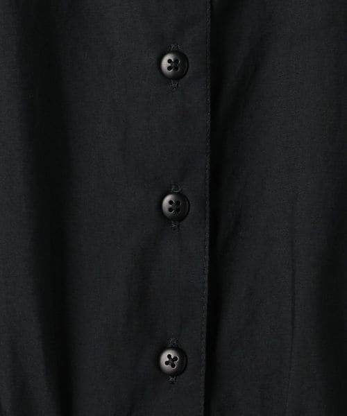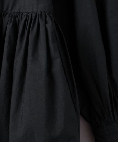 トップス部分はシャツ仕様できちんと感があり、スカートとドロップショルダーのギャザーでフェミニンな雰囲気をプラス。