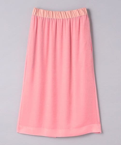 ウエスト部の光沢のある異素材がアクセントになっているミディ丈スカートです。