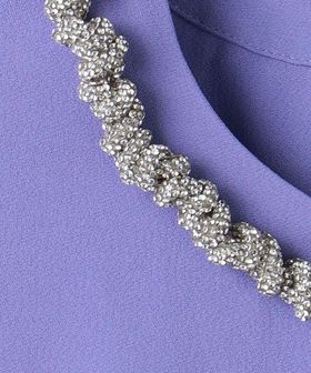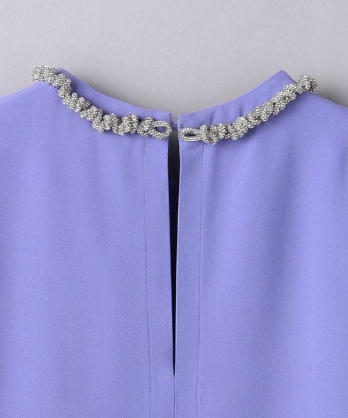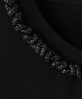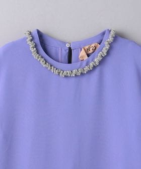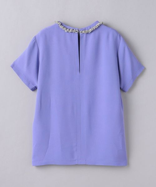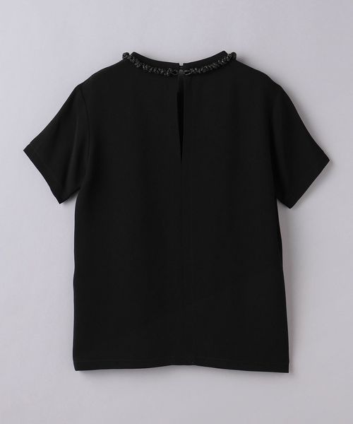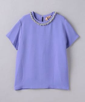 Tシャツのようなデザインにエレガントなビジューが映えるブラウス