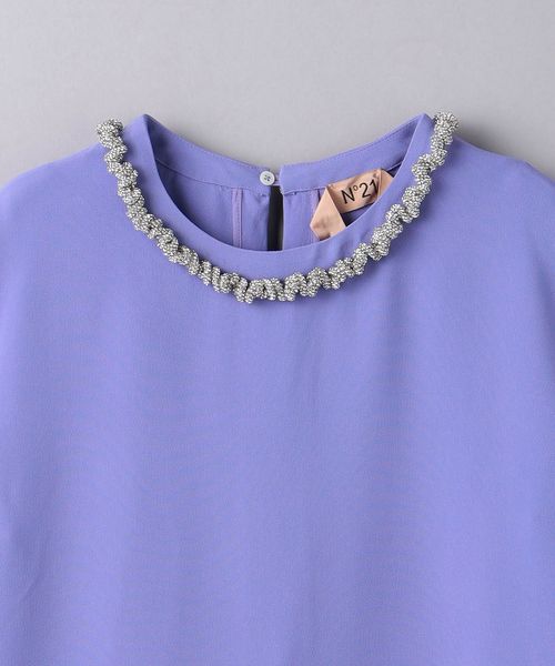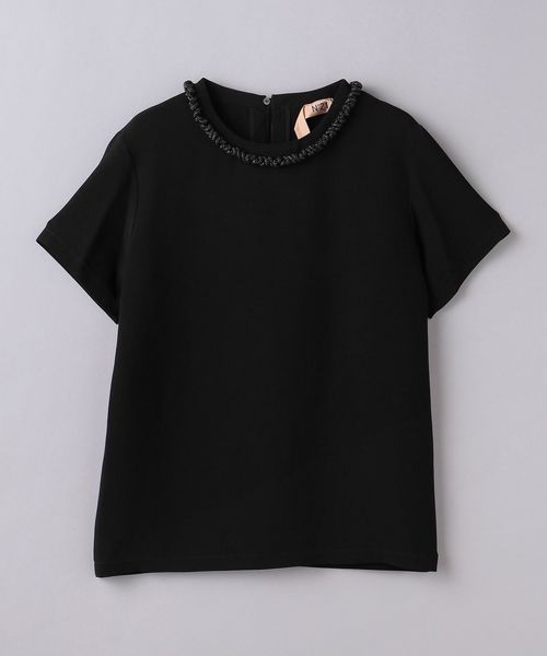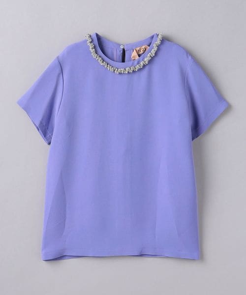<N°21>ビジューネック ショートスリーブ ブラウス