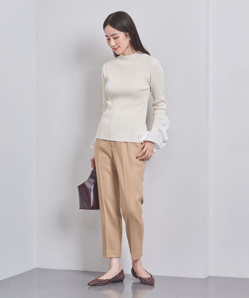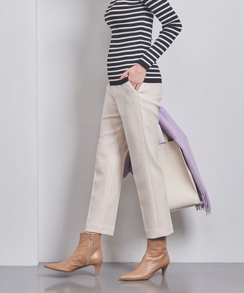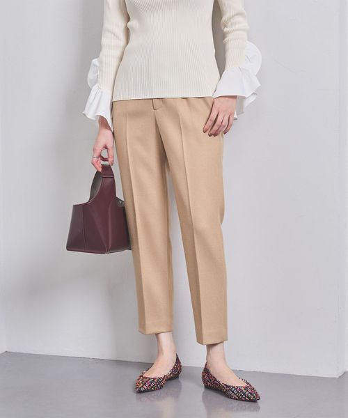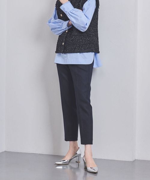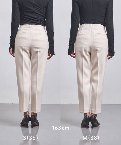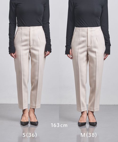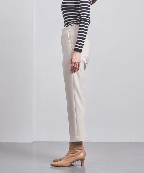 裾に向けて細身になるテーパードシルエットは、すっきりとした美脚効果が期待できます。